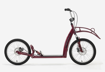 Removal of the rear suspension also allows this scooter to be folded, with quick release wheels and brushbow, this scooter can be packed down to fit on the backseat of a car or into the boot.